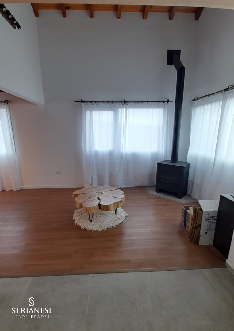 Casa a estrenar en Ñirihuau, Bariloche. Vista al Cerro Leones. Construccion con sistema Steel Frame. Desarrollada en dos plantas: PLANTA BAJA: amplio living/comedor, cocina con muebles de bajo y sobre mesada, toilette. PLANTA ALTA: sala de estar, dos dormitorios y un baño completo. La propiedad dispone de agua corriente y luz eléctrica. El gas, por el momento, se abastece mediante garrafa para la cocina y el calefón. Cuenta con instalación preparada para calefacción por radiadores. Posee una platea de 36 m 2 destinada a la futura construcción de un quincho. VENTA DIRECTA. *Las medidas son aproximadas y al solo efecto orientativo. Las medidas reales surgirán del titulo de propiedad respectivo.* Contactanos para más información y coordinar una visita. Strianese Propiedades 5631-3357 / WP 116-482-8773 Colombres 110. Lomas de Zamora. Santiago Strianese CPMCLZ. mat 4316 www.strianeseprop.com
